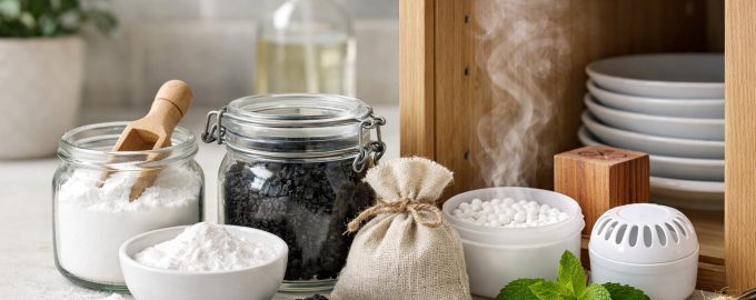 O odor desagradável na cozinha concentra-se muitas vezes no interior dos móveis onde são guardados os cereais, as especiarias ou a loiça.